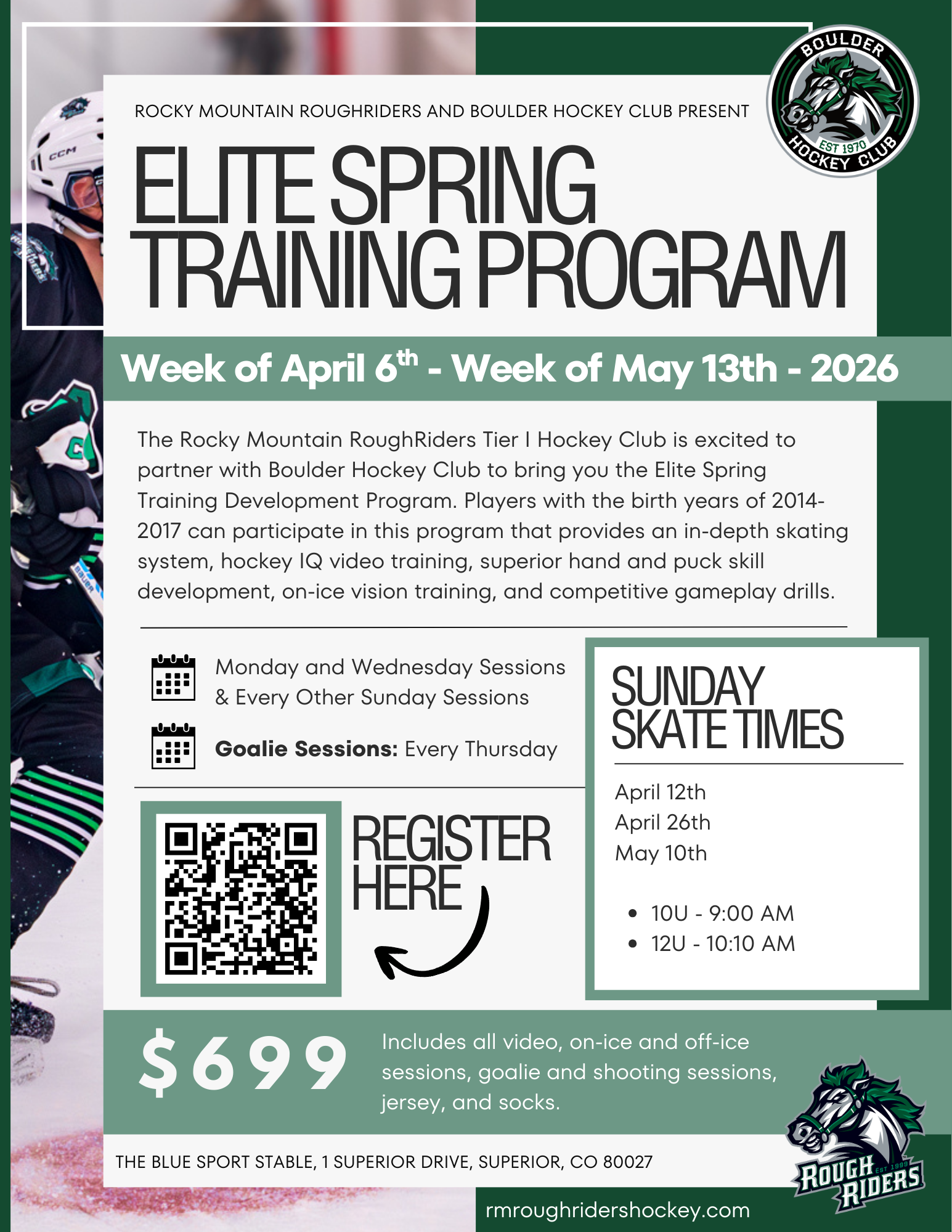The camp will be run by RoughRiders Tier I hockey coaches and our Director of Player Development, ensuring players receive top-tier instruction and feedback.
